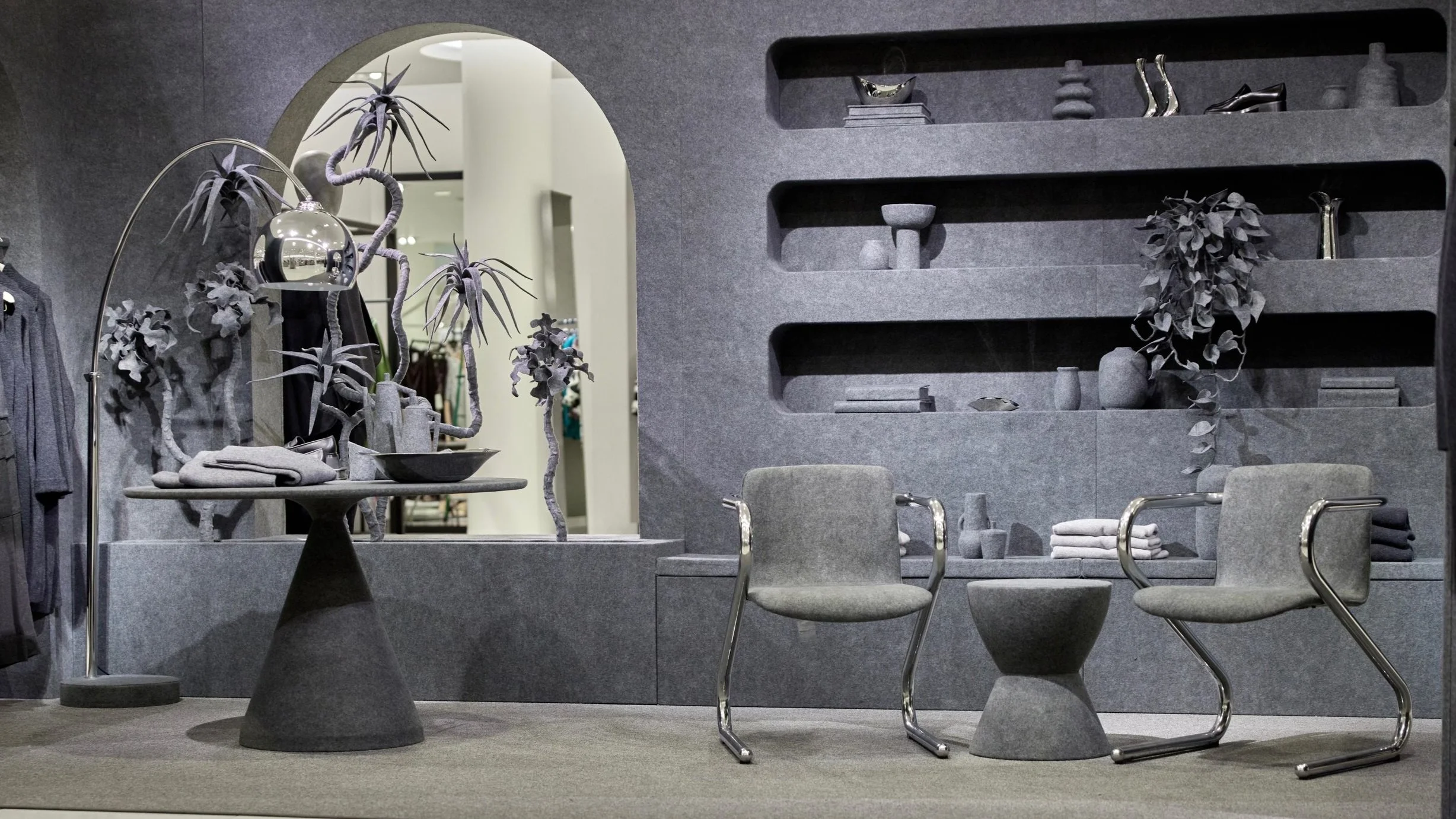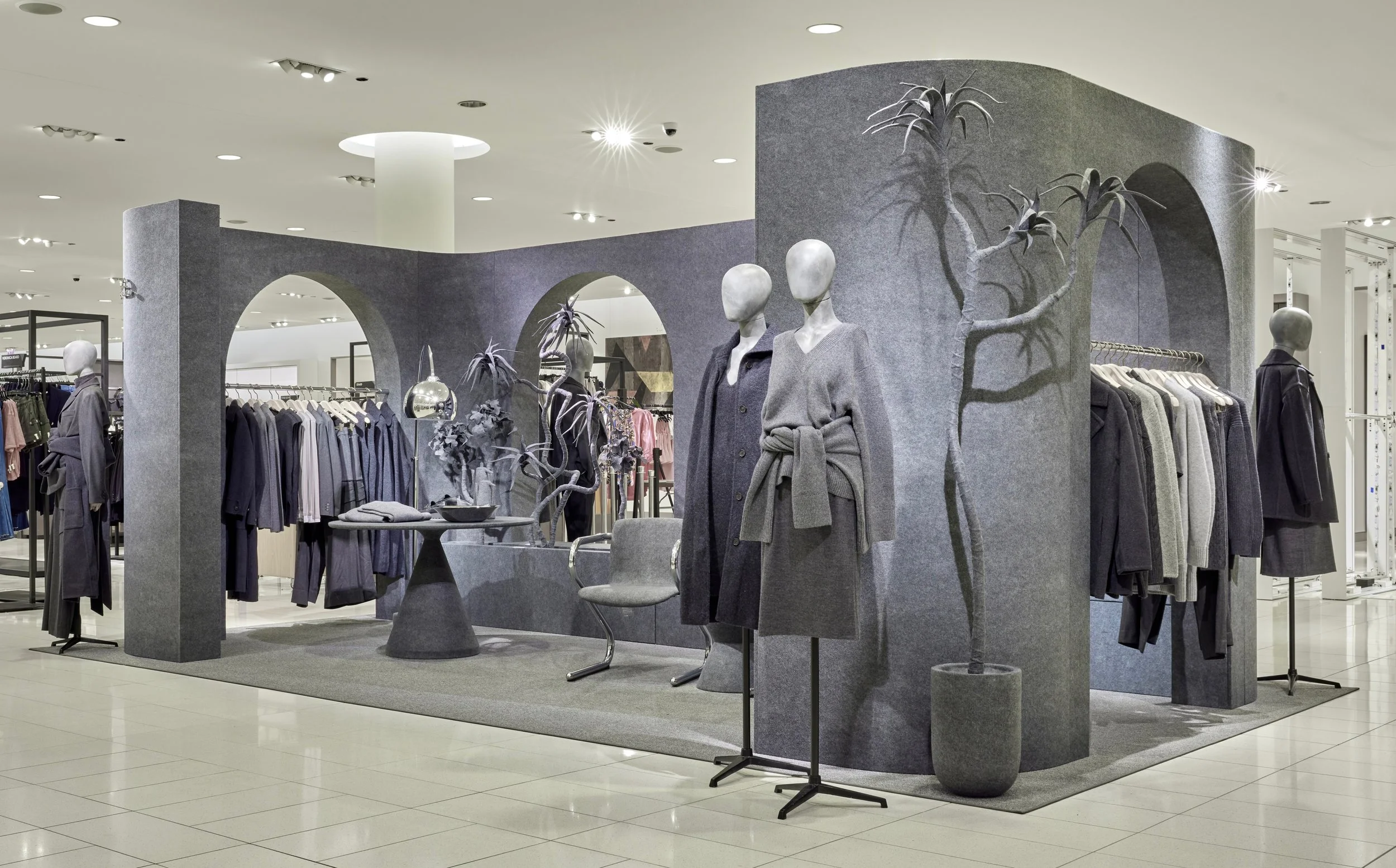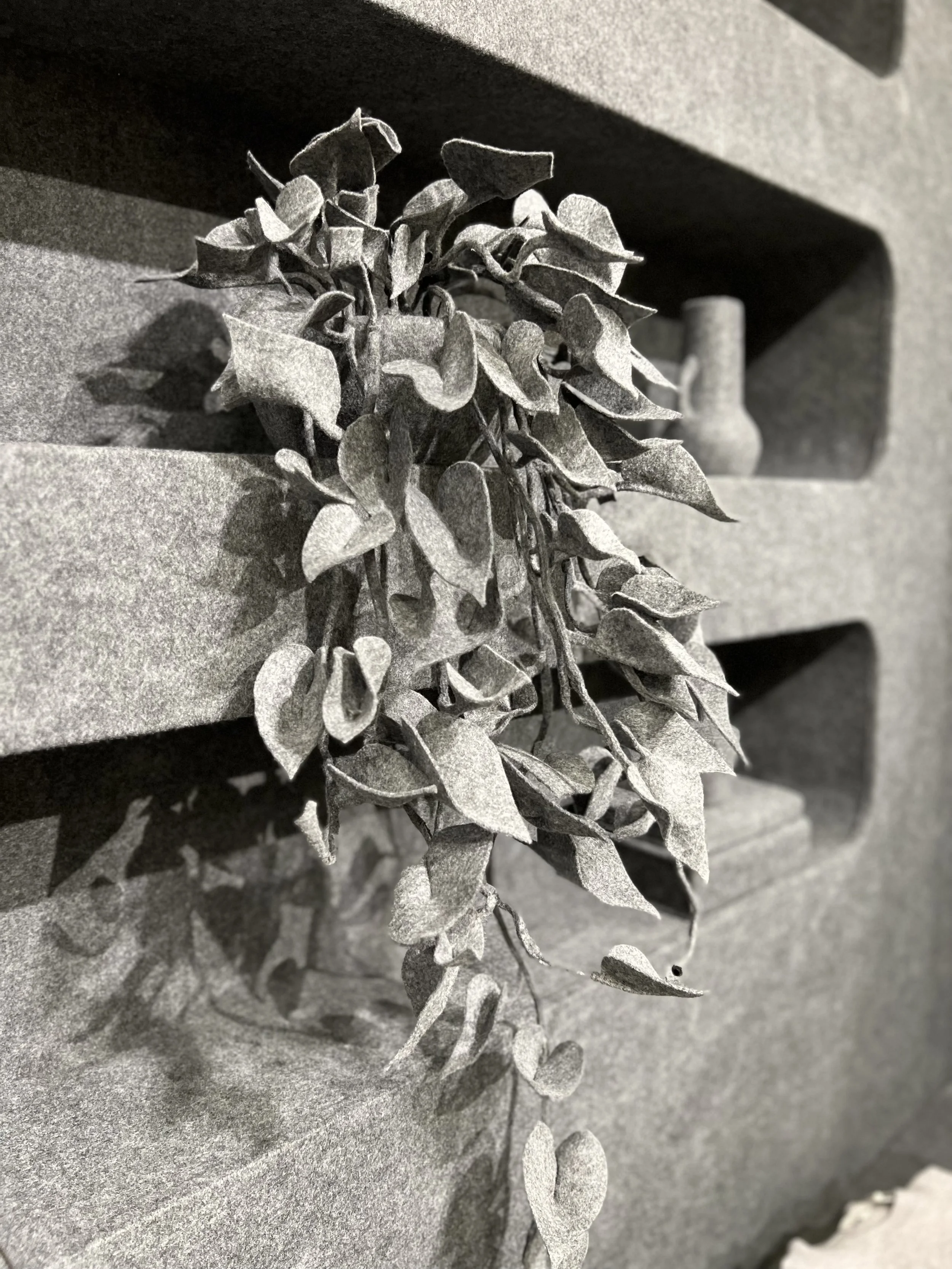 This monochromatic felt pop up was a project by Big Heavy Studios for Vince at Nordstrom. Creating the felt living space, from plants to walls and even giving mannequins a faux lime washing, required incredible care and attention to detail. 2023.
